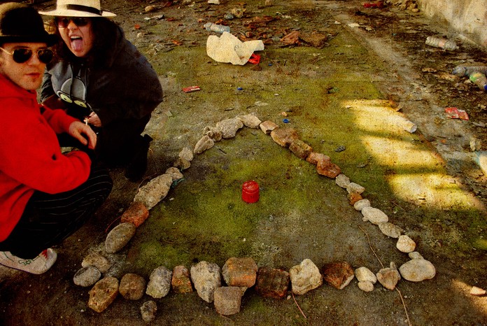 Esplora un luogo abbandonato e lascia un simbolo triangolare.