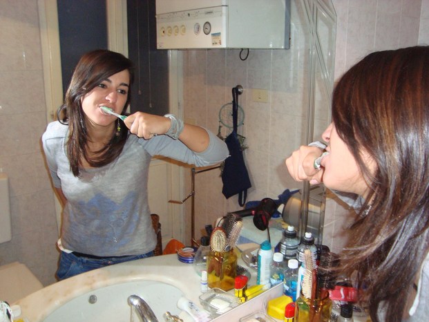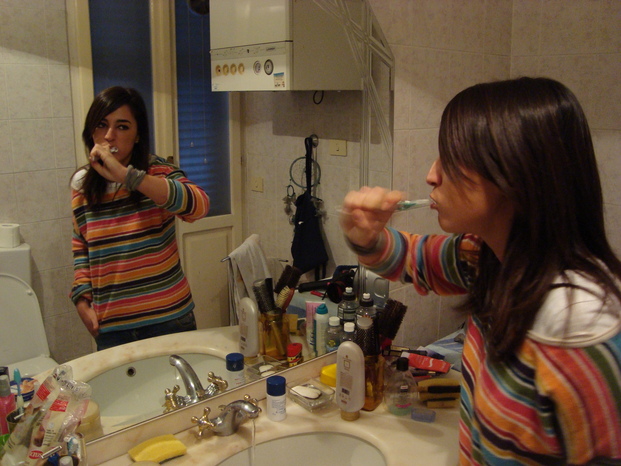 lavaggio mattutino dei denti...si nota soprattutto dalla faccia direi..