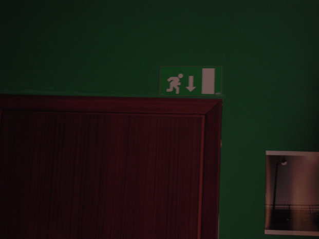 un po + in alto, ma non meno importante, il segnale dell'uscita di emergenza, perchè nella vita...non si sa mai....