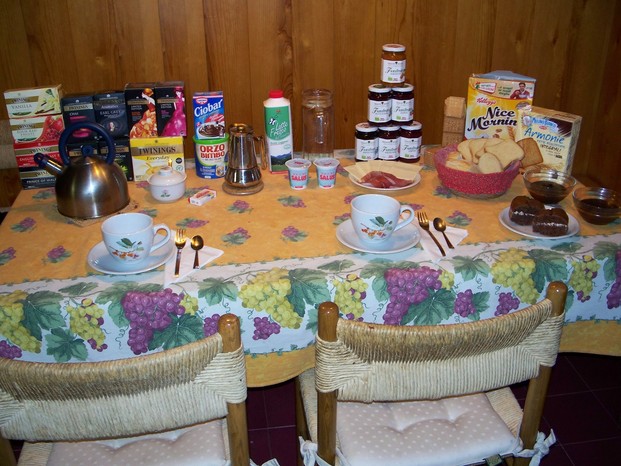 Originali thè presi insieme in Irlanda,cioccolata,orzo,latte..zucchero e dolcificante,acqua...ovviamente il caffè (hehe),yogurt,vasta gamma di marmellate in forma di piramide(lol),biscotti,cereali,fette biscottate,pane di vari tipi,budino al cioccolato ed ovviamente...torta! Ma manca ancora quel tocco da albergo...quindi ecco l'idea: un tocco salato! Recupero al volo del prosciutto crudo e qualche sottiletta...et voilà!Con un bigliettino romantico la "mattina dorata" è pronta^^