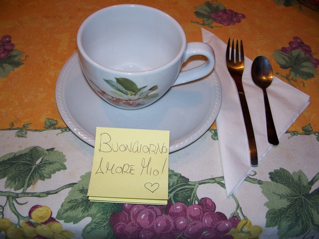 Così la mattina dopo mi alzo prima del solito,silenziosa come un ninja,e allestisco al volo una colazione per me ed il mio Amore...
