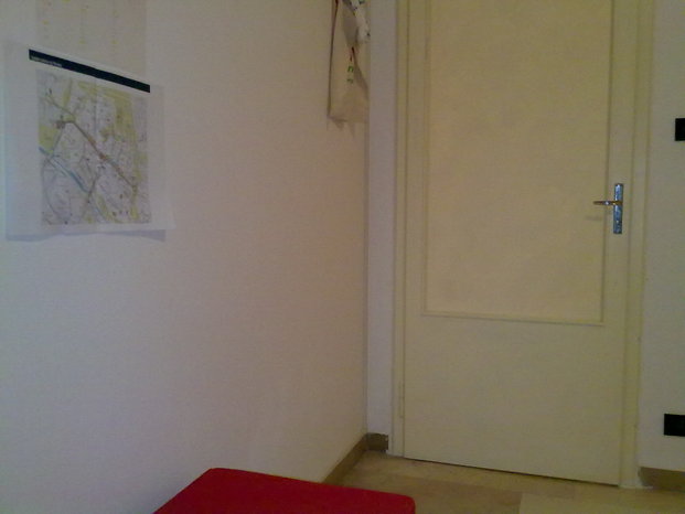 “Un puff rosso che dà un po’ di colore, cartina dell’autubus, calendario fai da te, sacchetti della spesa, una porta chiusa per isolarmi l’ud”
