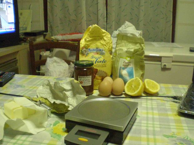 Farina, burro, zucchero, uova, crema al pistacchio (perchè criticalcity ha l'odore e il sapore del pistacchio ) e quant' altro ! :D