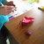 La seconda e la terza le regalo a Sara, prprio in occasione della sua festa di compleanno (a Sara ho fatto anche un regalo decente!). Lei si becca il faccino rugoso con gli occhiali. Invece Eli, che ha una maglia arancione, può accostare la terza creazione, una bella castagna arancione su fiore di panno viola.