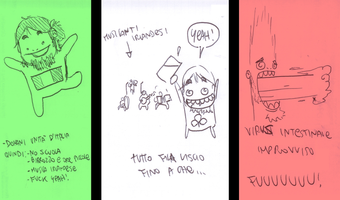 Disegna un fumetto che racconti la notte appena trascorsa.