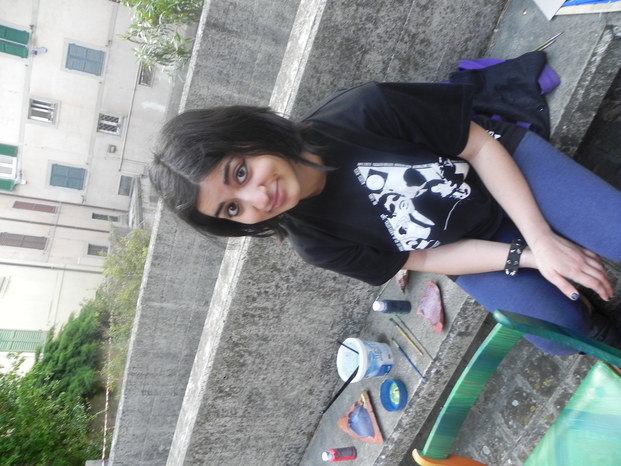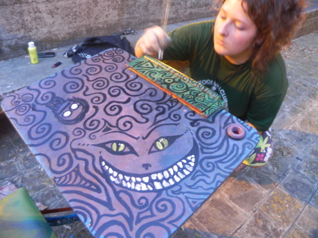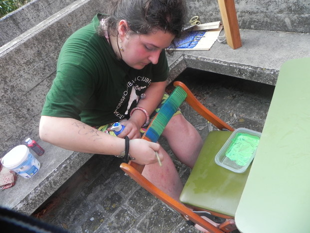 “Claire & KeRRR si cimentano nella decorazione di una vecchia sedia/tavolino di Claire :D”