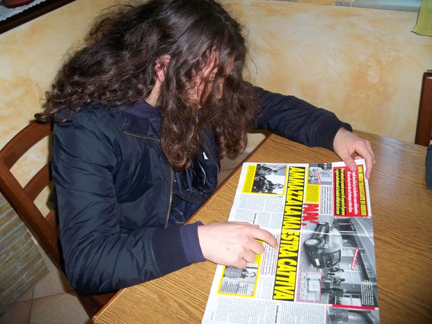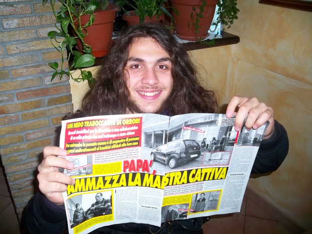 Andrea alla ricerca dell'articolo più inquietante.. "Papà, ammazza la maestra cattiva" sembra il miglior candidato!
