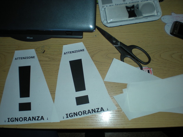 Fase di ritaglio del cartello a quasi forma triangolare (forma internazionale che simboleggia pericolo!)